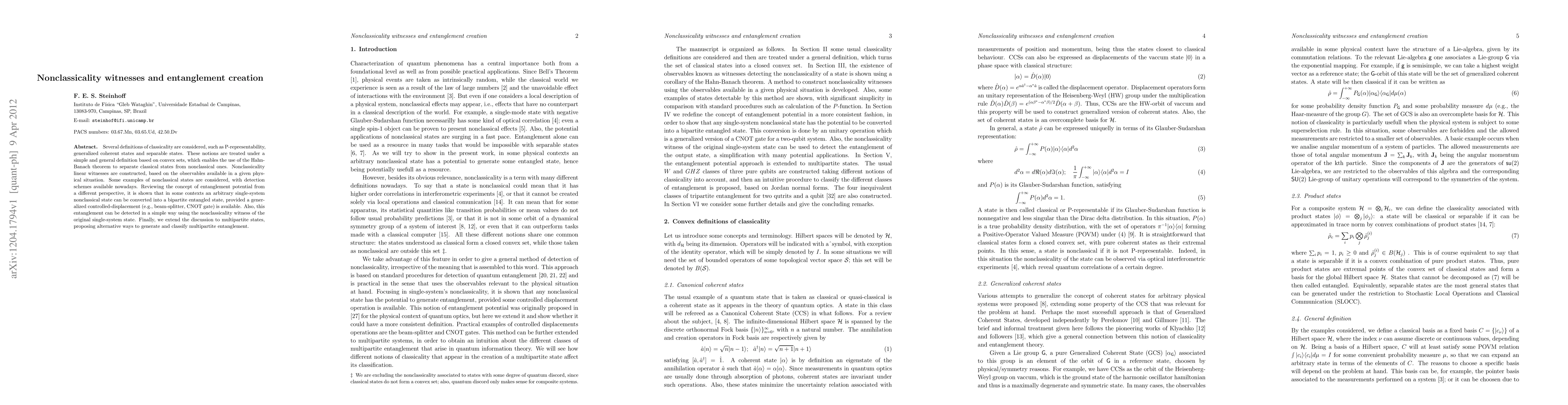 Several definitions of classicality are considered, such as P-representability, generalized coherent states and separable states. These notions are treated under a simple and general definition based on convex sets, which enables the use of the Hahn-Banach theorem to separate classical states from nonclassical ones. Nonclassicality linear witnesses are constructed, based on the observables available in a given physical situation. Some examples of nonclassical states are considered, with detection schemes available nowadays. Reviewing the concept of entanglement potential from a different perspective, it is shown that in some contexts an arbitrary single-system nonclassical state can be converted into a bipartite entangled state, provided a generalized controlled-displacement (e.g., beam-splitter, CNOT gate) is available. Also, this entanglement can be detected in a simple way using the nonclassicality witness of the original single-system state. Finally, we extend the discussion to multipartite states, proposing alternative ways to generate and classify multipartite entanglement.
