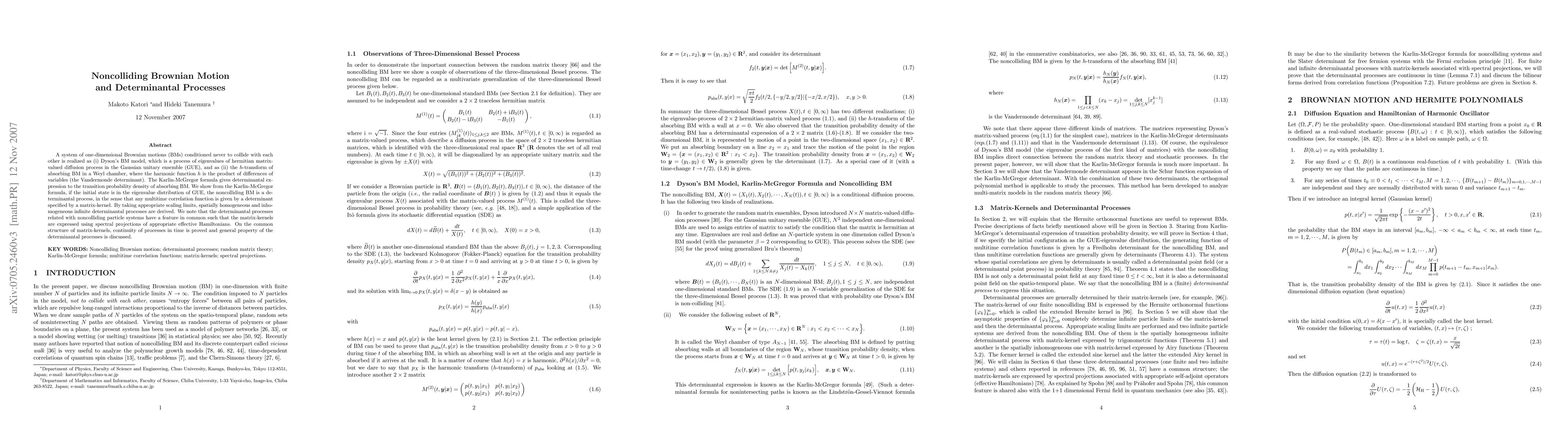 This paper investigates noncolliding Brownian motion systems, demonstrating they correspond to determinantal processes, specifically Dyson's BM model and the $h$-transform of absorbing BM. It establishes that these processes exhibit determinantal correlations and derives homogeneous and inhomogeneous infinite determinantal processes.