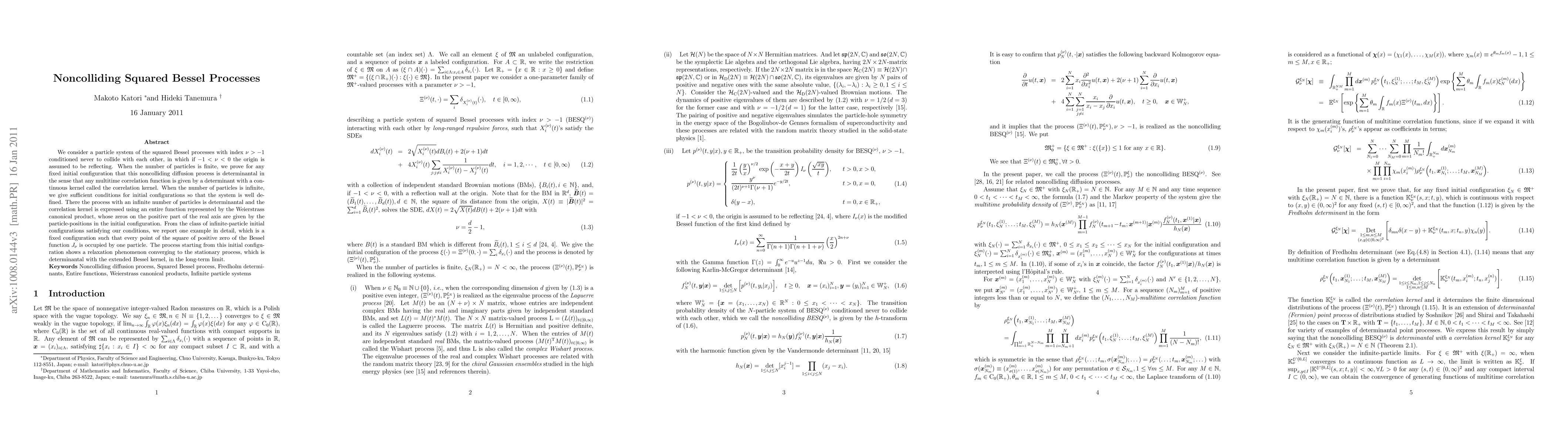 The work extends previous research on determinantal point processes by providing detailed analysis for noncolliding squared Bessel processes, including specific examples and conditions for infinite-particle systems.