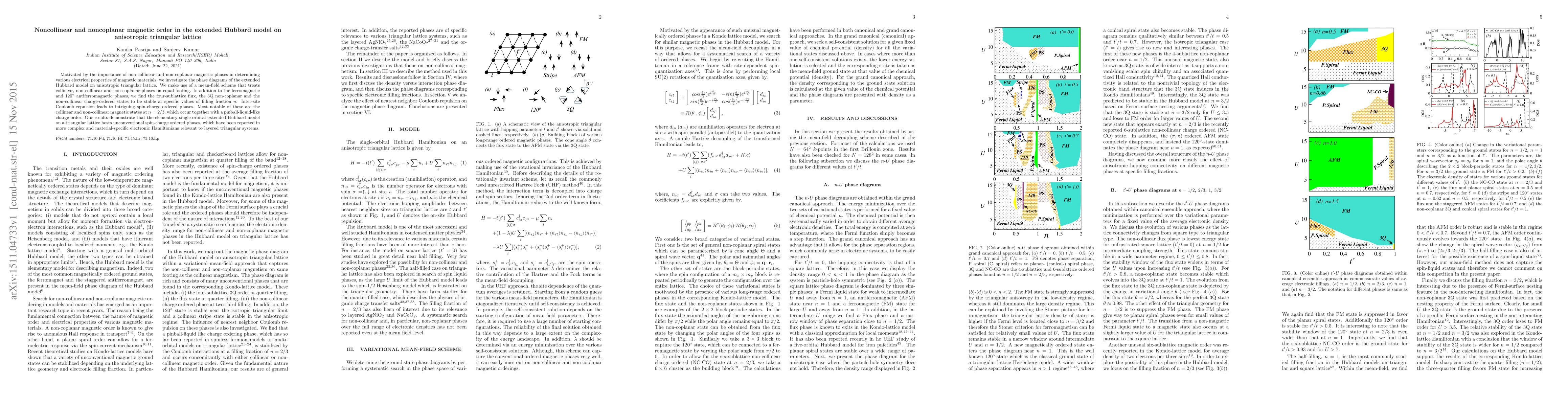This paper explores the magnetic phase diagrams of the extended Hubbard model on an anisotropic triangular lattice, revealing unconventional spin-charge ordered phases including non-coplanar and non-collinear magnetic states, alongside a pinball-liquid-like charge order at specific filling fractions. The study highlights the complex interplay between spin and charge orders in simple single-orbital models.