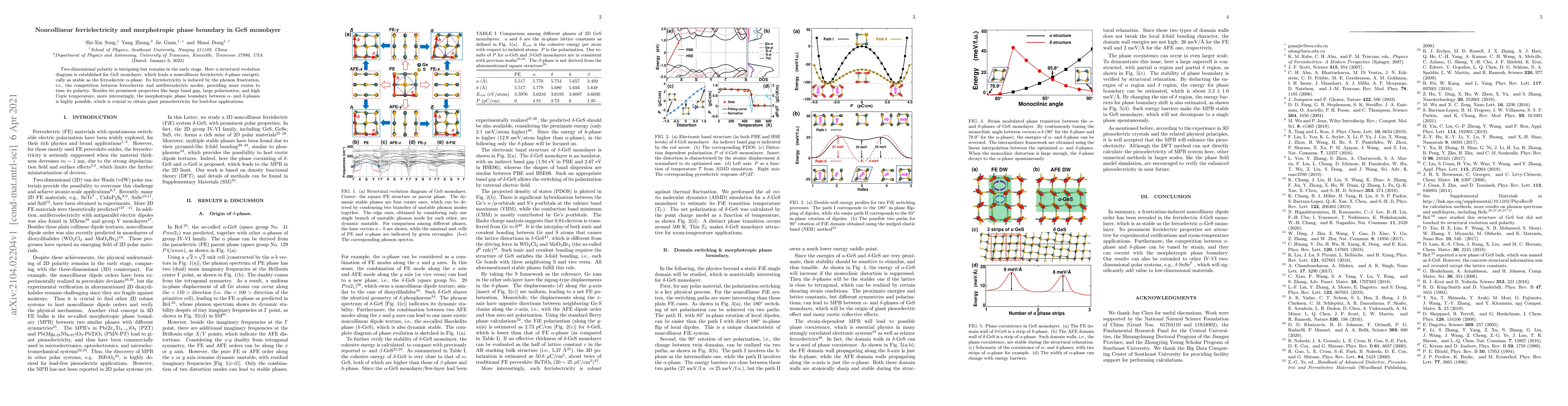 Researchers discovered a noncollinear ferrielectric phase in GeS monolayer that is as stable as the traditional ferroelectric phase, offering new routes to control its polarity. This finding has implications for lead-free applications of giant piezoelectricity.