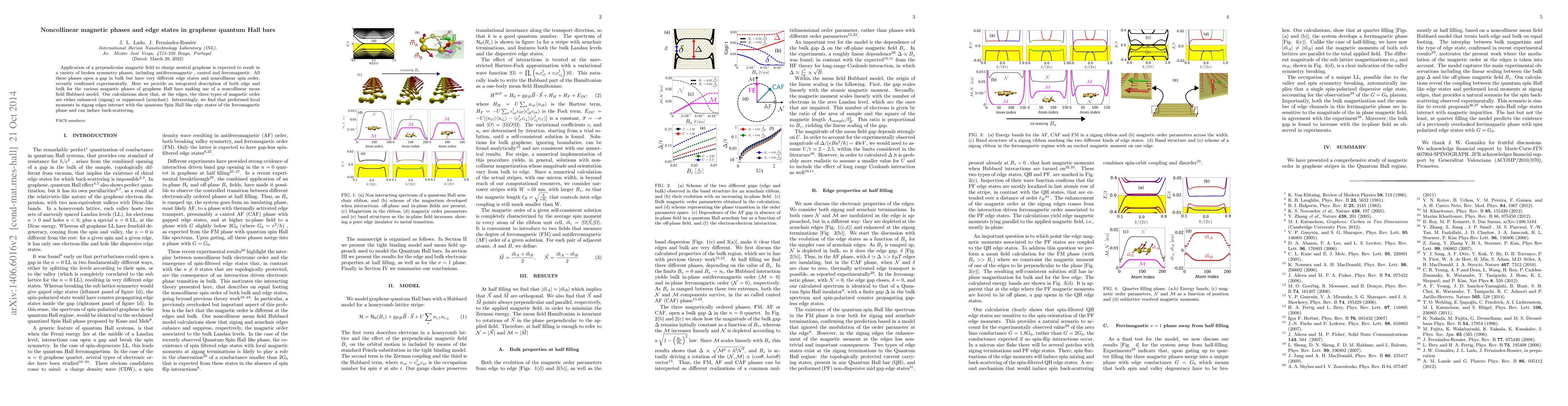 Research investigates the magnetic phases and edge states in graphene quantum Hall bars under perpendicular magnetic fields. The study finds distinct edge behaviors for different magnetic orders, with interactions between zigzag edge moments and ferromagnetic phase edge states potentially causing back-scattering.