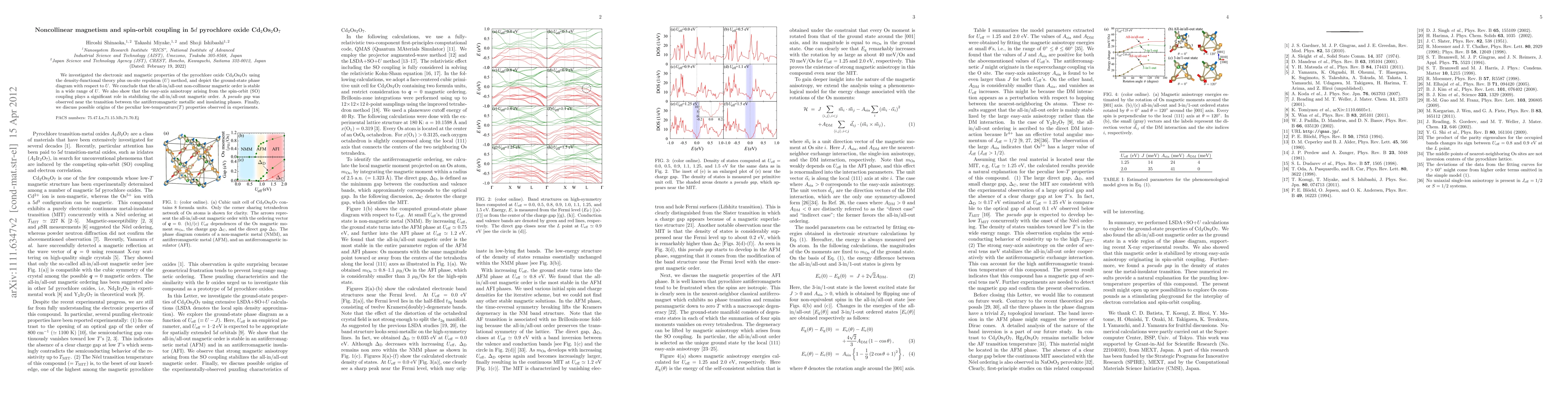 We investigated the electronic and magnetic properties of the pyrochlore oxide Cd$_2$Os$_2$O$_7$ using the density-functional theory plus on-site repulsion ($U$) method, and depict the ground-state phase diagram with respect to $U$. We conclude that the all-in/all-out non-collinear magnetic order is stable in a wide range of $U$. We also show that the easy-axis anisotropy arising from the spin-orbit (SO) coupling plays a significant role in stabilizing the all-in/all-out magnetic order. A \textit{pseudo gap} was observed near the transition between the antiferromagnetic metallic and insulating phases. Finally, we discuss possible origins of the peculiar low-temperature($T$) properties observed in experiments.