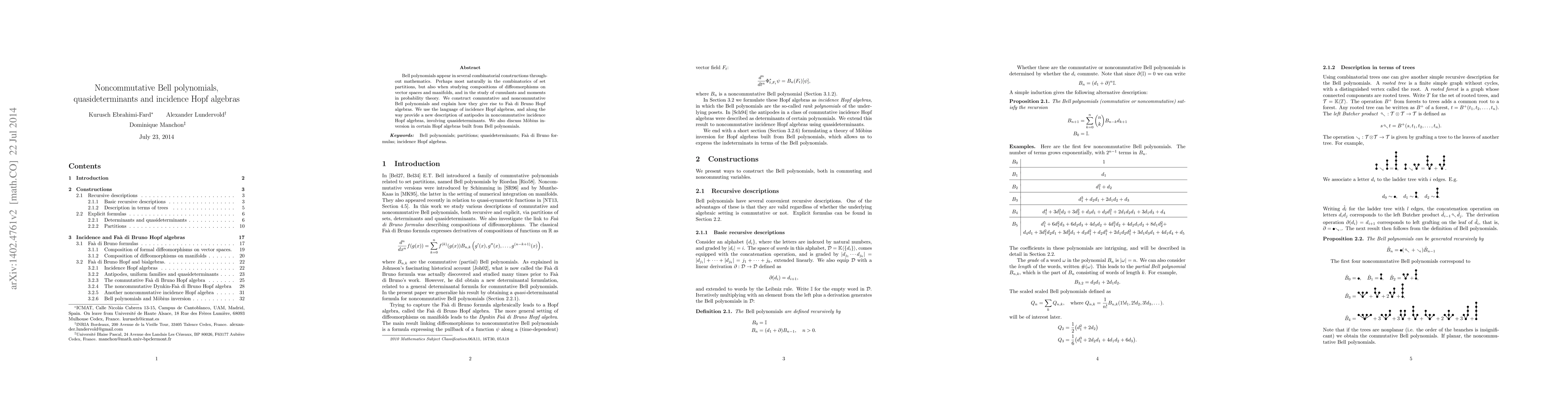 This paper constructs commutative and noncommutative Bell polynomials leading to Fa\`a di Bruno Hopf algebras and introduces a new description of antipodes in noncommutative incidence Hopf algebras using quasideterminants, alongside discussing M\"obius inversion in related Hopf algebras.