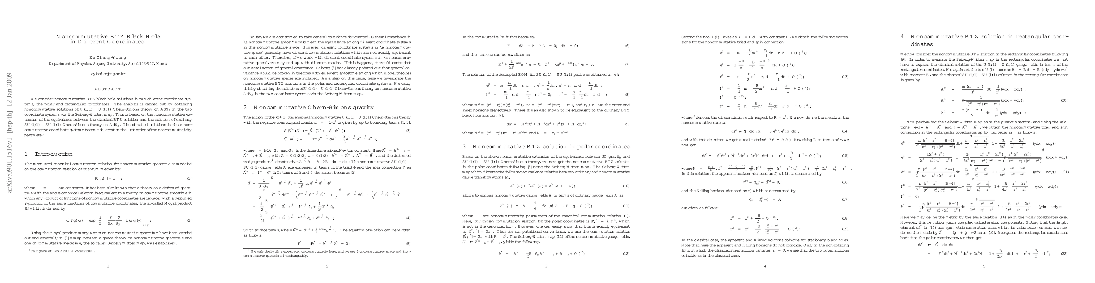 This paper explores noncommutative BTZ black hole solutions in both polar and rectangular coordinates using the Seiberg-Witten map, revealing distinct first-order effects in the noncommutativity parameter $\theta$ for each coordinate system.