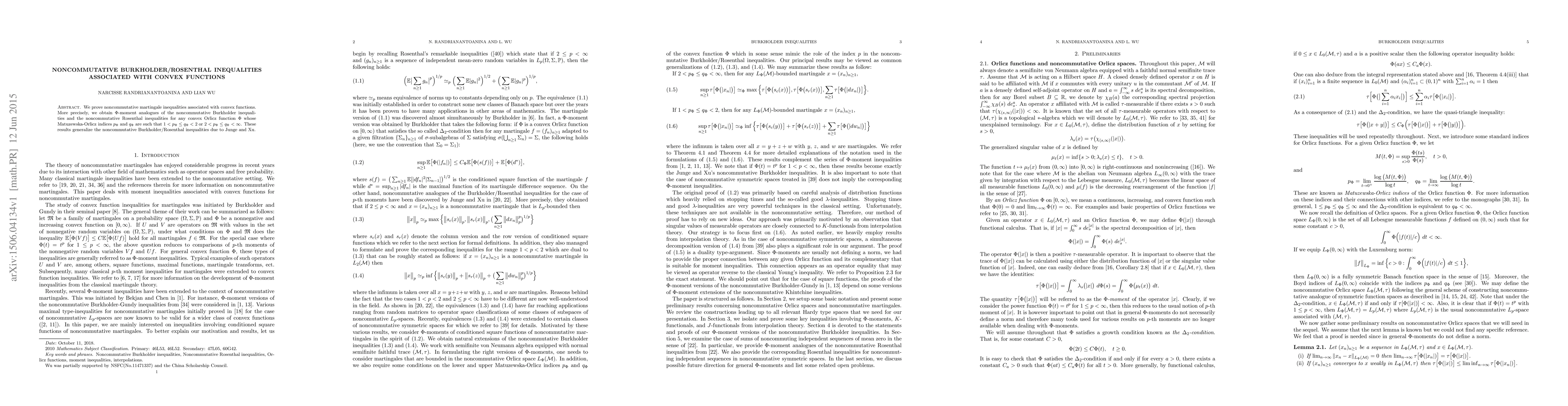 This paper proves noncommutative martingale inequalities linked to convex functions, establishing $\Phi$-moment analogues of the noncommutative Burkholder and Rosenthal inequalities for specific convex Orlicz functions. These results extend previous work by Junge and Xu.