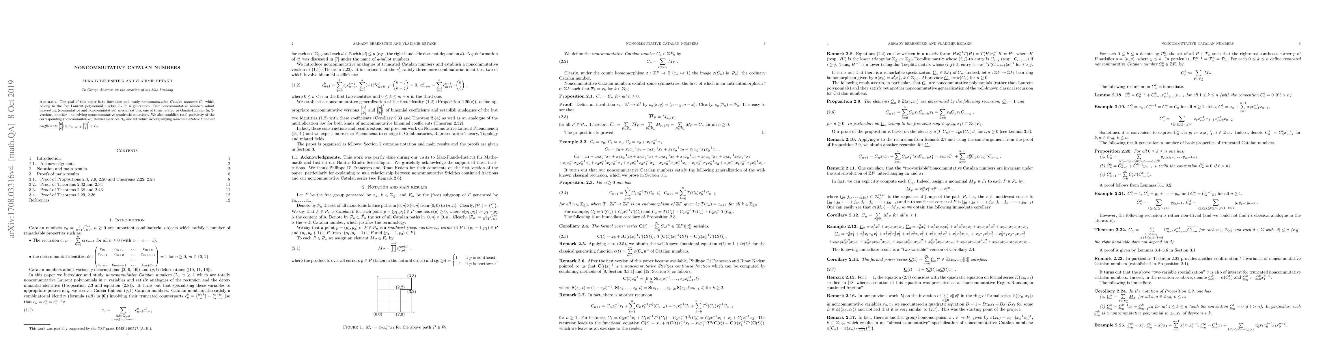 This paper introduces noncommutative Catalan numbers in a free Laurent polynomial algebra, exploring their specializations linked to Garsia-Haiman and noncommutative quadratic equations. It also establishes total positivity of associated Hankel matrices and noncommutative binomial coefficients.