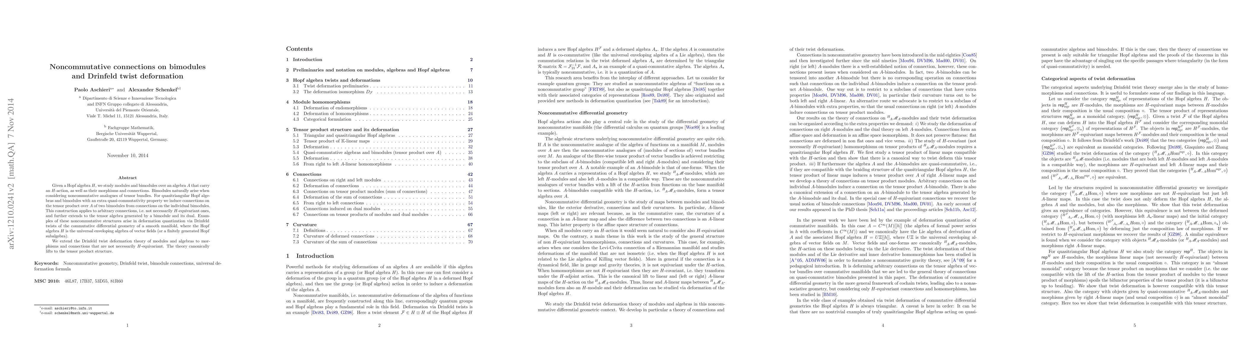 This paper investigates connections on bimodules over an algebra A with an H-action, particularly for quasitriangular Hopf algebras. It introduces a method to induce connections on tensor products of bimodules from individual connections, extending this to tensor algebra. The construction is applied in the context of deformation quantization through Drinfeld twists.