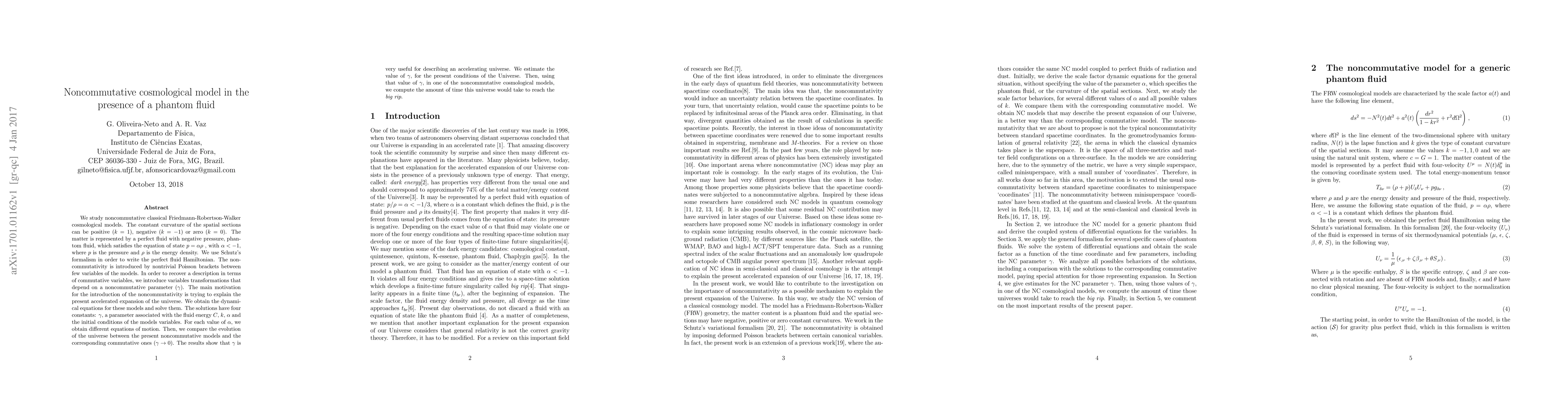 This paper explores noncommutative Friedmann-Robertson-Walker cosmological models with phantom fluid, aiming to explain the universe's accelerated expansion. It introduces noncommutativity via Poisson brackets and uses Schutz's formalism to derive the perfect fluid Hamiltonian, finding that the parameter $\gamma$ effectively describes the accelerating universe and computes the time to "big rip" using this model.