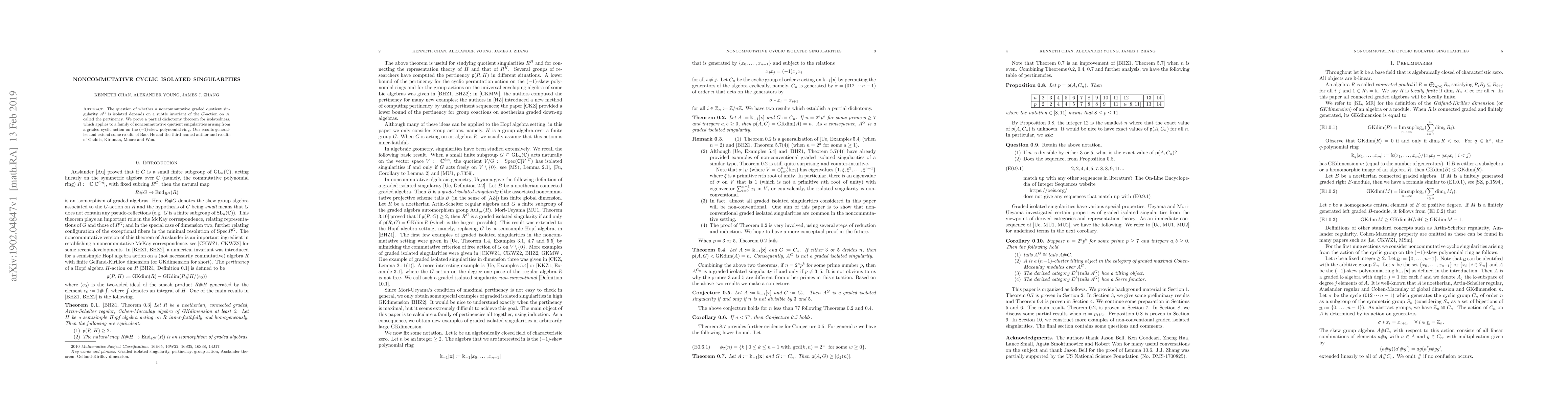 A research paper investigates whether noncommutative graded quotient singularities are isolated, proving a partial dichotomy theorem for isolatedness based on the pertinency of a $G$-action invariant.