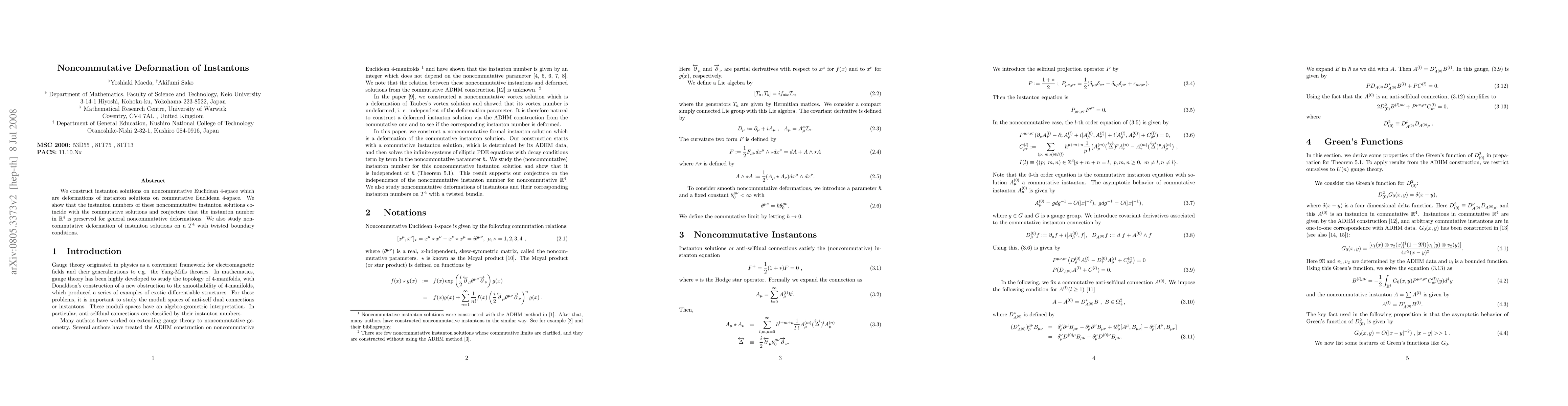This paper constructs noncommutative instanton solutions on noncommutative Euclidean 4-space, demonstrating that their instanton numbers match those of commutative instantons and conjectures the preservation of instanton number in general noncommutative deformations. It further explores instanton solutions on a torus with twisted boundary conditions.