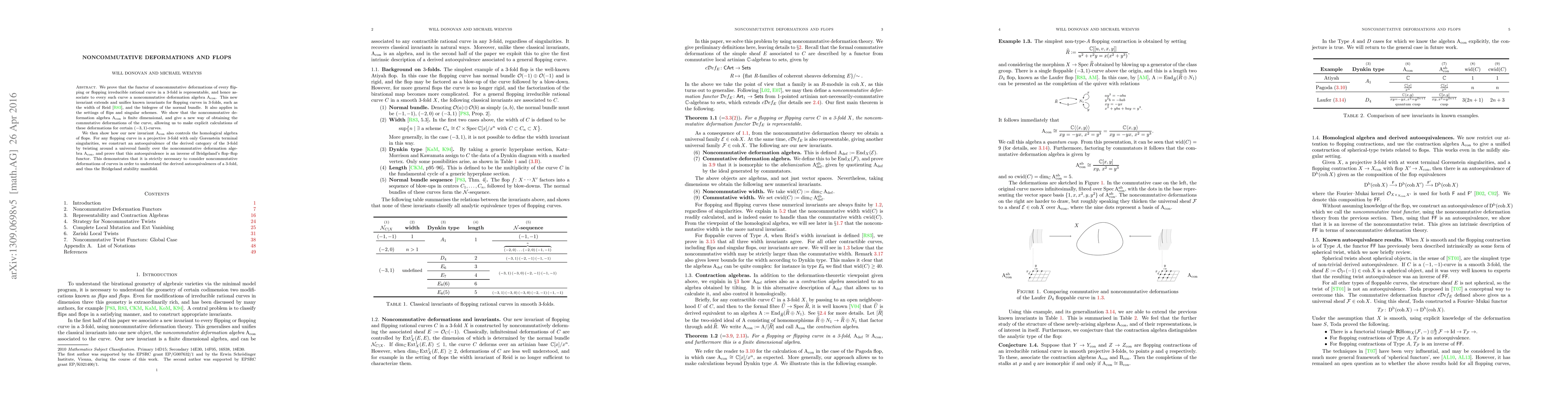 We prove that the functor of noncommutative deformations of every flipping or flopping irreducible rational curve in a 3-fold is representable, and hence associate to every such curve a noncommutative deformation algebra. This new invariant extends and unifies known invariants for flopping curves in 3-folds, such as the width of Reid, and the bidegree of the normal bundle. It also applies in the settings of flips and singular schemes. We show that the noncommutative deformation algebra is finite dimensional, and give a new way of obtaining the commutative deformations of the curve, allowing us to make explicit calculations of these deformations for certain (-3,1)-curves. We then show how our new invariant also controls the homological algebra of flops. For any flopping curve in a projective 3-fold with only Gorenstein terminal singularities, we construct an autoequivalence of the derived category of the 3-fold by twisting around a universal family over the noncommutative deformation algebra, and prove that this autoequivalence is an inverse of Bridgeland's flop-flop functor. This demonstrates that it is strictly necessary to consider noncommutative deformations of curves in order to understand the derived autoequivalences of a 3-fold, and thus the Bridgeland stability manifold.