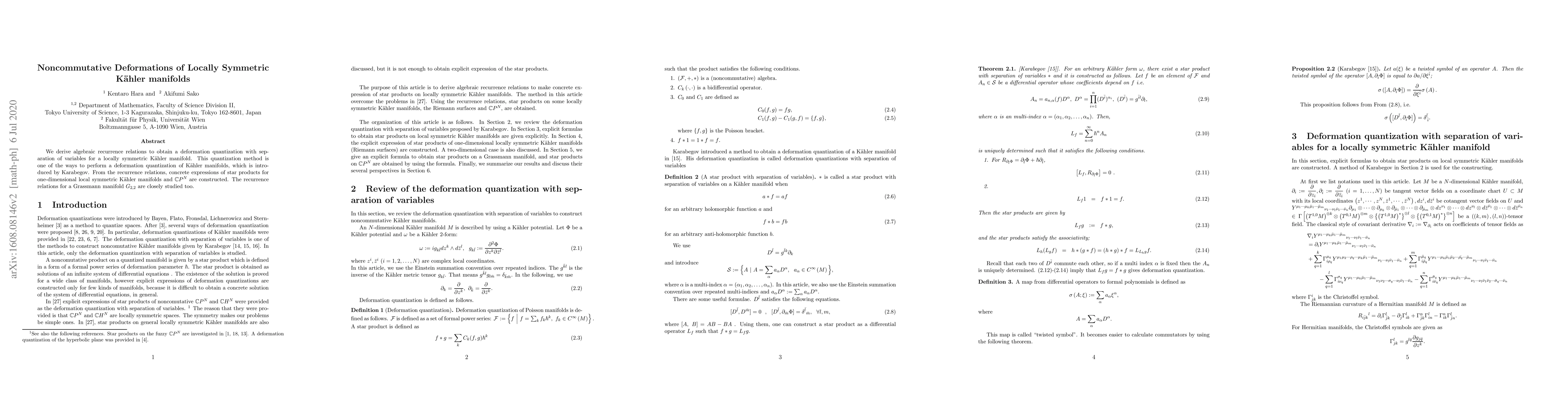 This paper develops recurrence relations for deformation quantization of locally symmetric Kähler manifolds, introducing a method with separation of variables. It constructs star products for one-dimensional local symmetric Kähler manifolds and ${\mathbb C}P^N$, and studies the recurrence relations for the Grassmann manifold $G_{2,2}$.