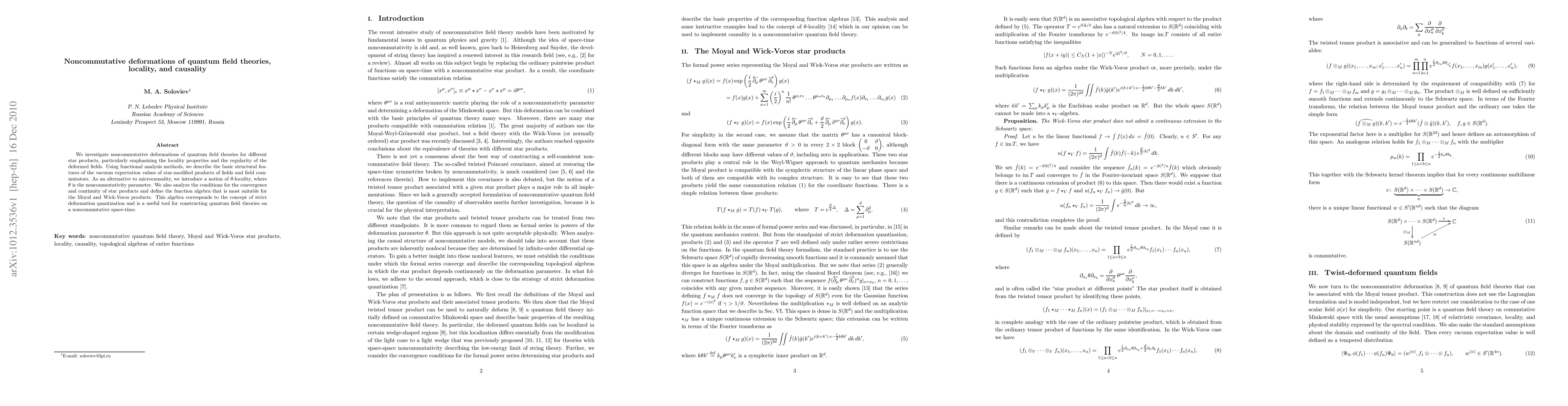 The paper explores noncommutative deformations of quantum field theories focusing on the effects of different star products on locality and causality. It introduces $\theta$-locality as an alternative to microcausality, analyzes convergence and continuity conditions for star products, and defines a suitable function algebra for strict deformation quantization on noncommutative space-time.