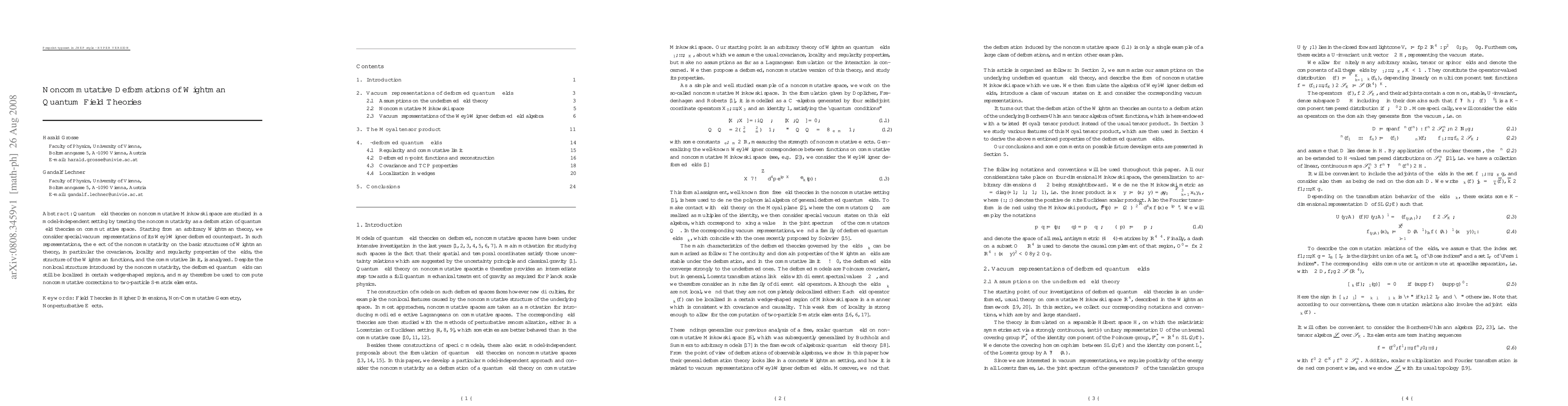 This paper examines quantum field theories on noncommutative Minkowski space by deforming classical field theories. It analyzes how noncommutativity affects fundamental properties like covariance and locality, and demonstrates that these deformed fields can still be localized for computing noncommutative corrections to S-matrix elements.