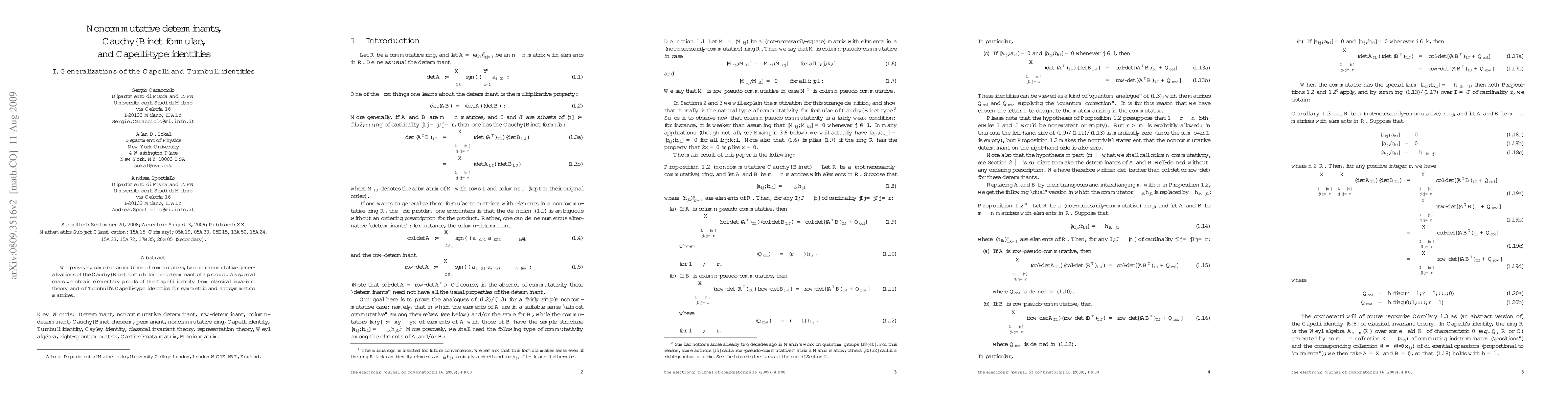 This paper generalizes the Cauchy-Binet formula for noncommutative determinants using commutator manipulations, providing proofs for the Capelli identity and Turnbull's identities related to symmetric and antisymmetric matrices.