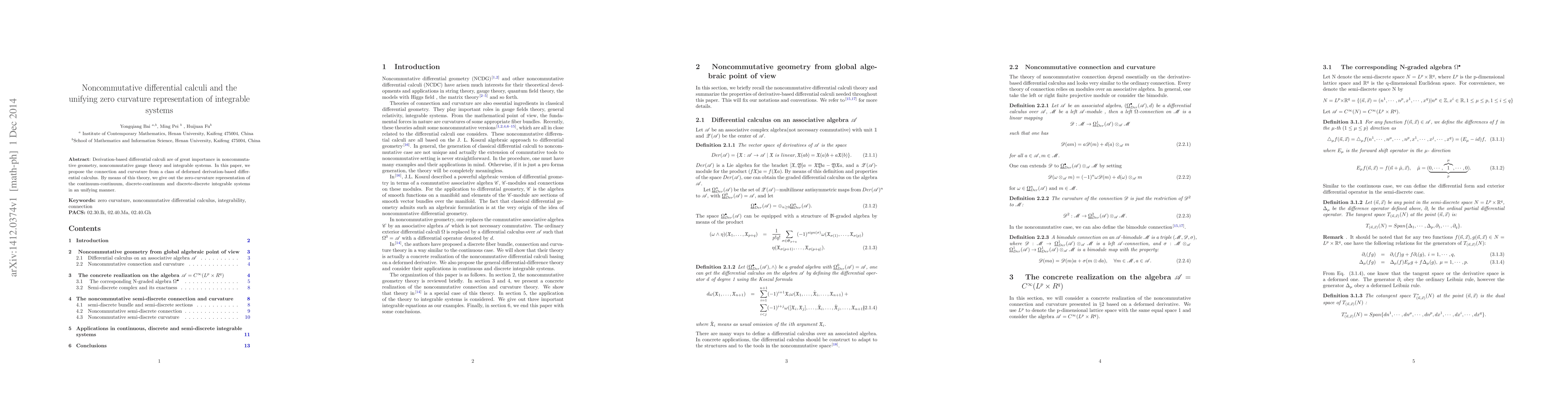 The paper introduces a deformed derivation-based differential calculus to connect noncommutative geometry with integrable systems, providing a unifying zero-curvature representation for various types of integrable systems.