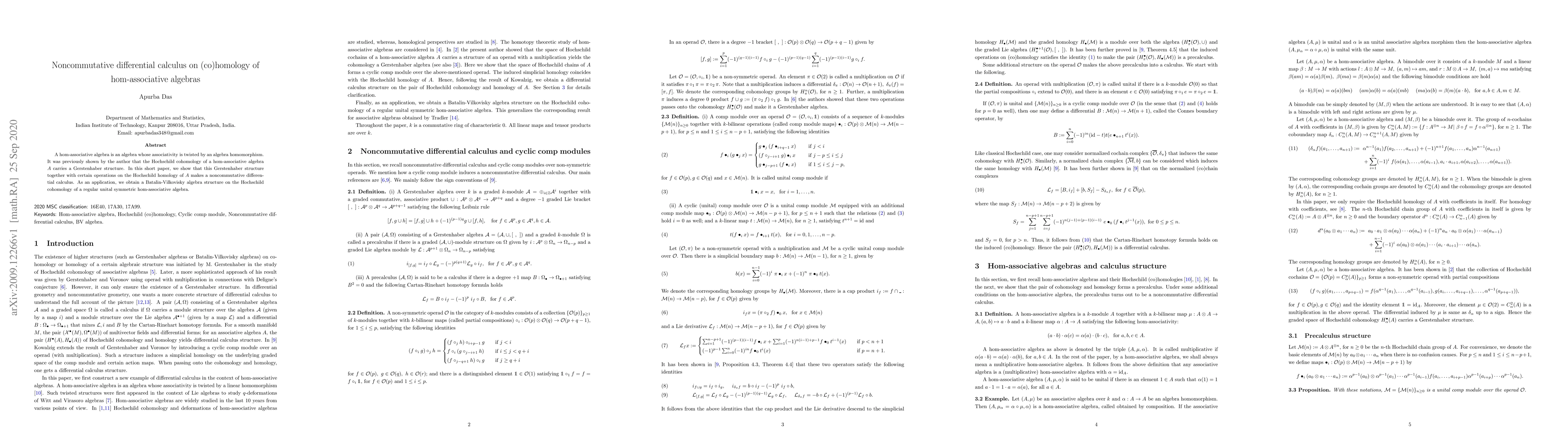 This paper explores the noncommutative differential calculus on the homology and cohomology of hom-associative algebras, revealing a Gerstenhaber structure on Hochschild cohomology and a Batalin-Vilkovisky algebra structure on the cohomology of regular unital symmetric hom-associative algebras.