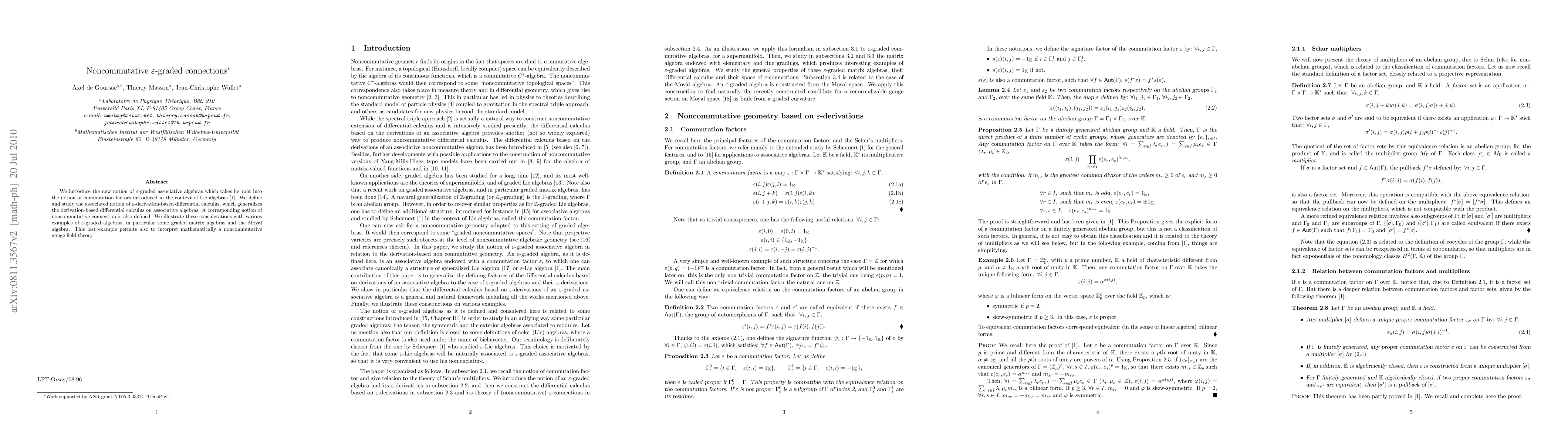 This paper introduces epsilon-graded associative algebras and develops a corresponding differential calculus and noncommutative connection framework. It applies these concepts to various algebras, including graded matrix algebras and the Moyal algebra, to explore noncommutative gauge field theory.