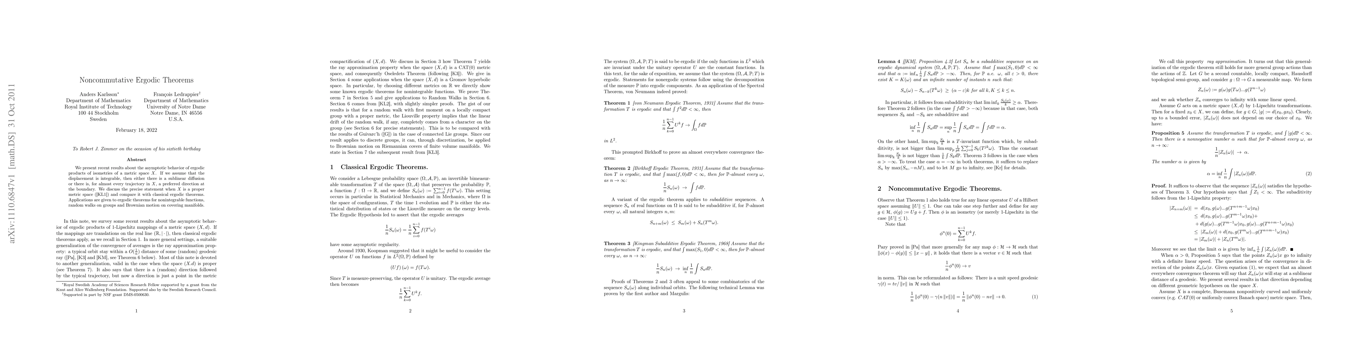 Summary: This paper explores the asymptotic behavior of ergodic products of isometries in metric spaces, showing that under integrable displacement, systems either exhibit sublinear diffusion or follow a preferred direction, with applications to ergodic theorems for nonintegrable functions and random walks.