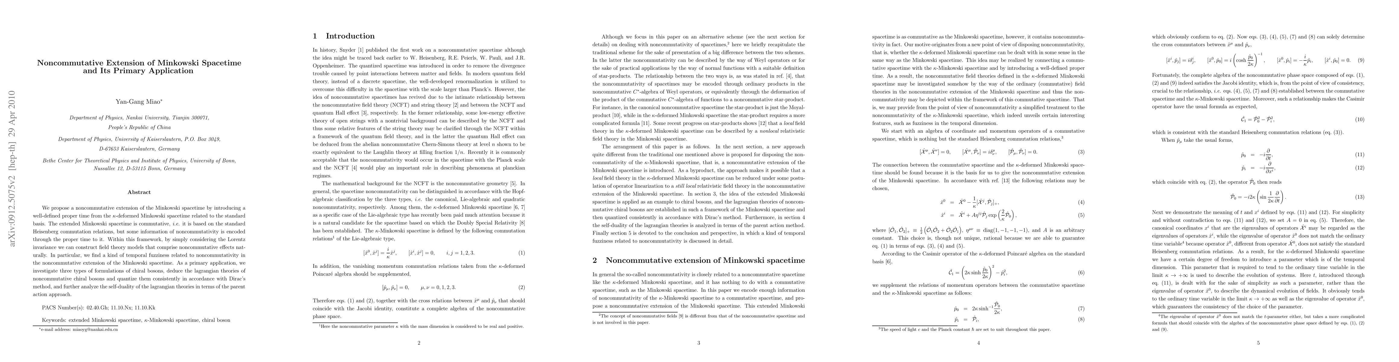 This paper proposes a noncommutative extension of Minkowski spacetime using kappa-deformation, introducing a proper time that retains Lorentz invariance while encoding noncommutativity. The study constructs field theories with natural noncommutative effects and quantizes noncommutative chiral bosons, analyzing their self-duality.