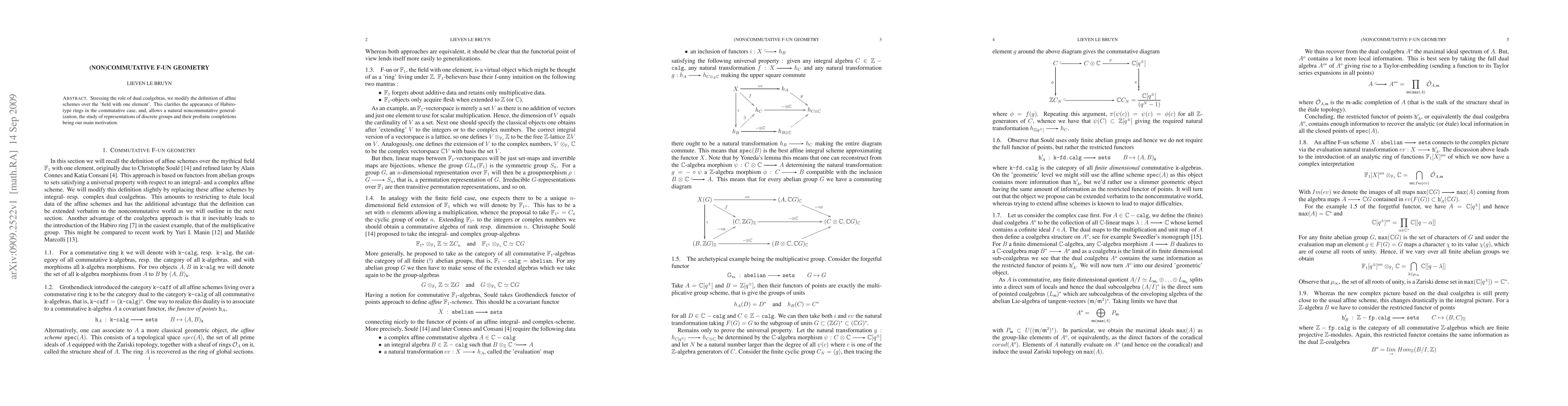 Stressing the role of dual coalgebras, we modify the definition of affine schemes over the 'field with one element'. This clarifies the appearance of Habiro-type rings in the commutative case, and, allows a natural noncommutative generalization, the study of representations of discrete groups and their profinite completions being our main motivation.