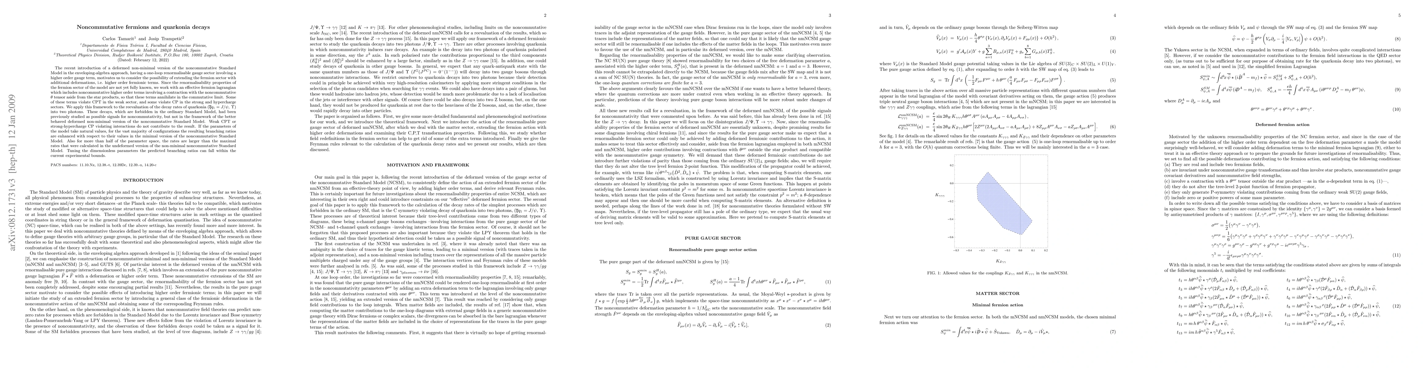 The recent introduction of a deformed non-minimal version of the noncommutative Standard Model in the enveloping-algebra approach, having a one-loop renormalisable gauge sector involving a higher order gauge term, motivates us to consider the possibility of extending the fermion sector with additional deformations, i.e. higher order fermionic terms. Since the renormalisability properties of the fermion sector of the model are not yet fully known, we work with an effective fermion lagrangian which includes noncommutative higher order terms involving a contraction with the noncommutative $\theta$ tensor aside from the star products, so that these terms annihilate in the commutative limit. Some of these terms violate CPT in the weak sector, and some violate CP in the strong and hypercharge sectors. We apply this framework to the reevaluation of the decay rates of quarkonia (\bar{q}q_{1} = J/\psi, \Upsilon) into two photons. These decays, which are forbidden in the ordinary Standard Model, had been previously studied as possible signals for noncommutativity, but not in the framework of the better behaved deformed non-minimal version of the noncommutative Standard Model. Weak CPT or strong-hypercharge CP violating interactions do not contribute to the result. If the parameters of the model take natural values, for the vast majority of configurations the resulting branching ratios are enhanced with respect to their values in the minimal version of the noncommutative Standard Model. Also for more than half of the parameter space, the rates are larger than the maximal rates that were calculated in the undeformed version of the non-minimal noncommutative Standard Model. Tuning the dimensionless parameters the predicted branching ratios can fall within the current experimental bounds.