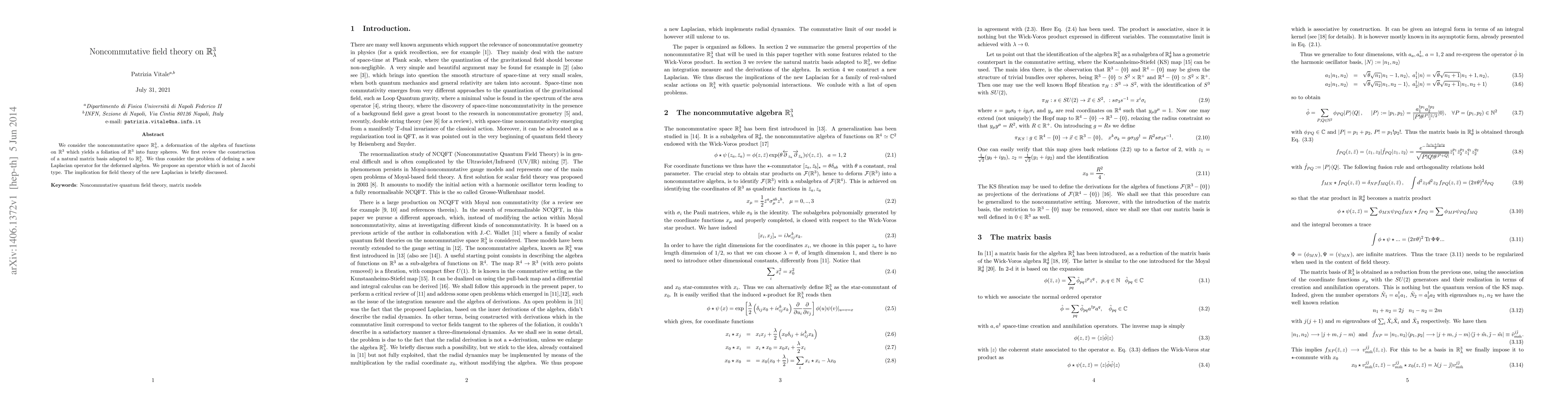 This paper examines noncommutative field theory on the deformed space $\mathbb{R}^3_\lambda$, proposing a new Laplacian operator that differs from the Jacobi type, with implications for field theory discussed. The authors explore a matrix basis adapted to this noncommutative space and its foliation into fuzzy spheres.