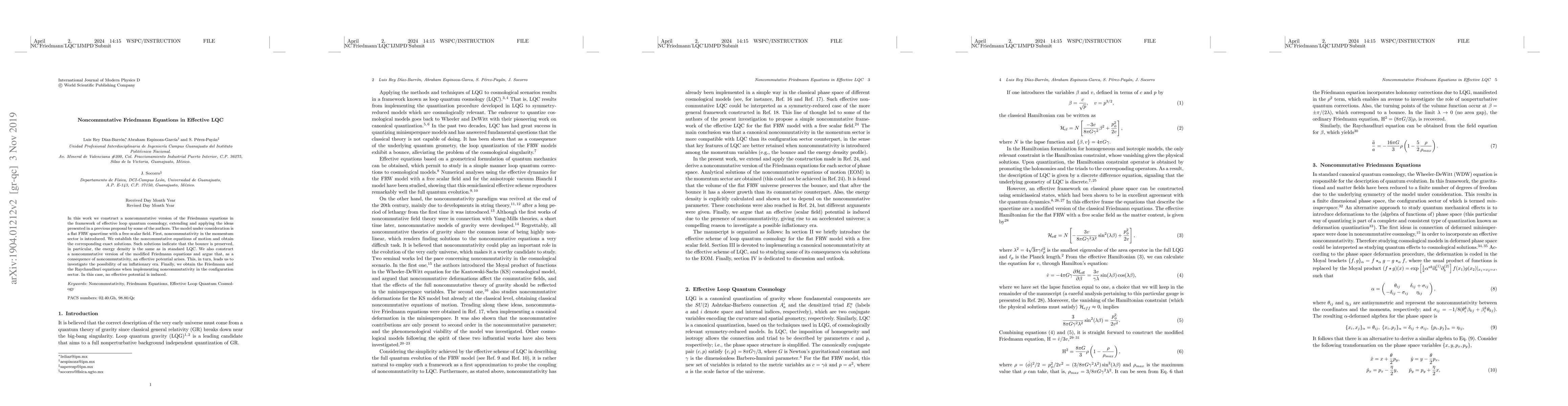 In this work we construct a noncommutative version of the Friedmann equations in the framework of effective loop quantum cosmology, extending and applying the ideas presented in a previous proposal by some of the authors. The model under consideration is a flat FRW spacetime with a free scalar field. First, noncommutativity in the momentum sector is introduced. We establish the noncommutative equations of motion and obtain the corresponding exact solutions. Such solutions indicate that the bounce is preserved, in particular, the energy density is the same as in standard LQC. We also construct a noncommutative version of the modified Friedmann equations and argue that, as a consequence of noncommutativity, an effective potential arises. This, in turn, leads us to investigate the possibility of an inflationary era. Finally, we obtain the Friedmann and the Raychaudhuri equations when implementing noncommutativity in the configuration sector. In this case, no effective potential is induced.