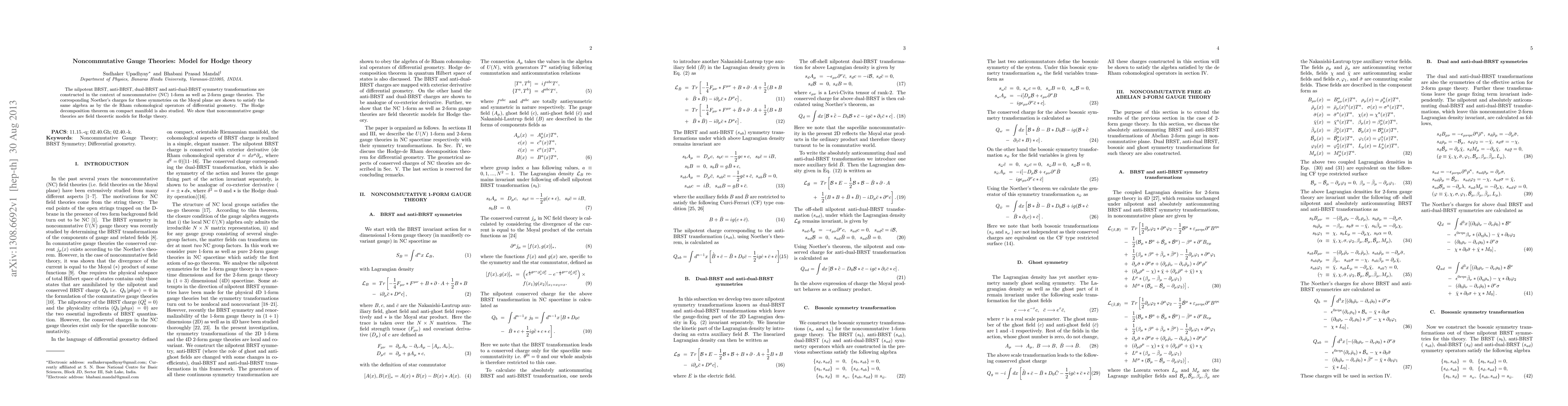 The novelty of this research lies in its exploration of symmetry transformations in noncommutative gauge theories and their connection to Hodge theory, providing a bridge between quantum field theory and differential geometry in noncommutative spaces.