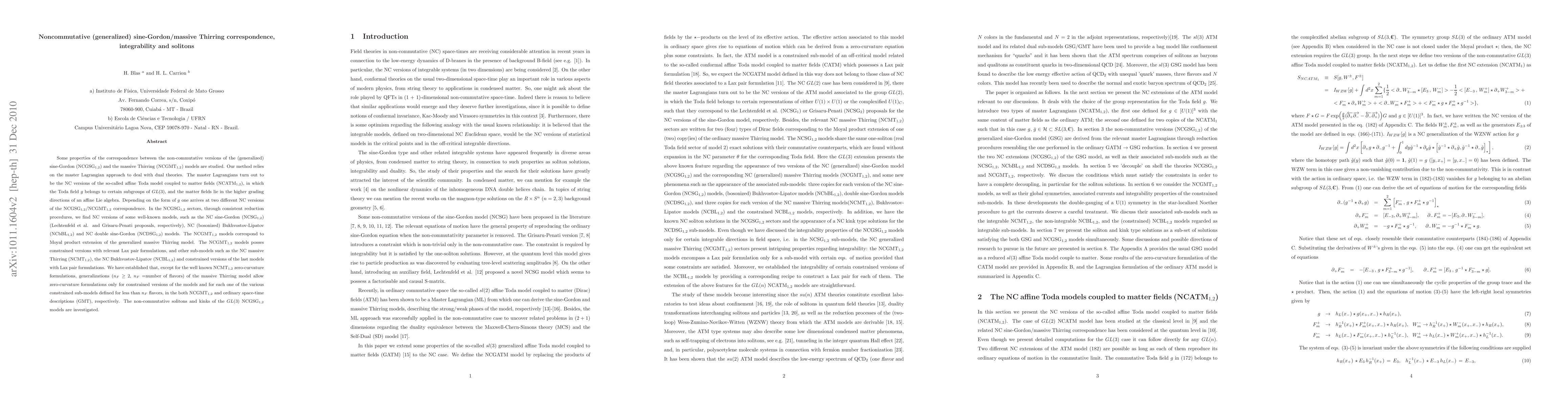 This paper explores the correspondence between non-commutative versions of the sine-Gordon and massive Thirring models, revealing their integrability through the master Lagrangian approach. It identifies various sub-models and constrained versions within these frameworks, establishing zero-curvature formulations for specific constrained sub-models and investigating non-commutative solitons and kinks.