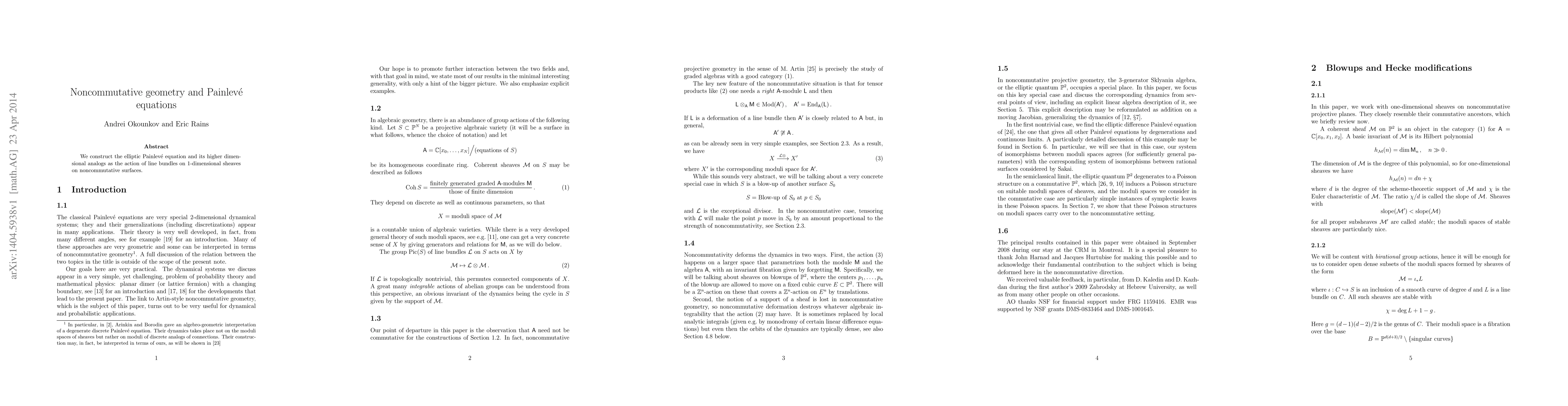 Researchers constructed Painlevé equations as a result of line bundles acting on 1-dimensional sheaves on noncommutative surfaces, offering a new perspective on these fundamental mathematical equations.