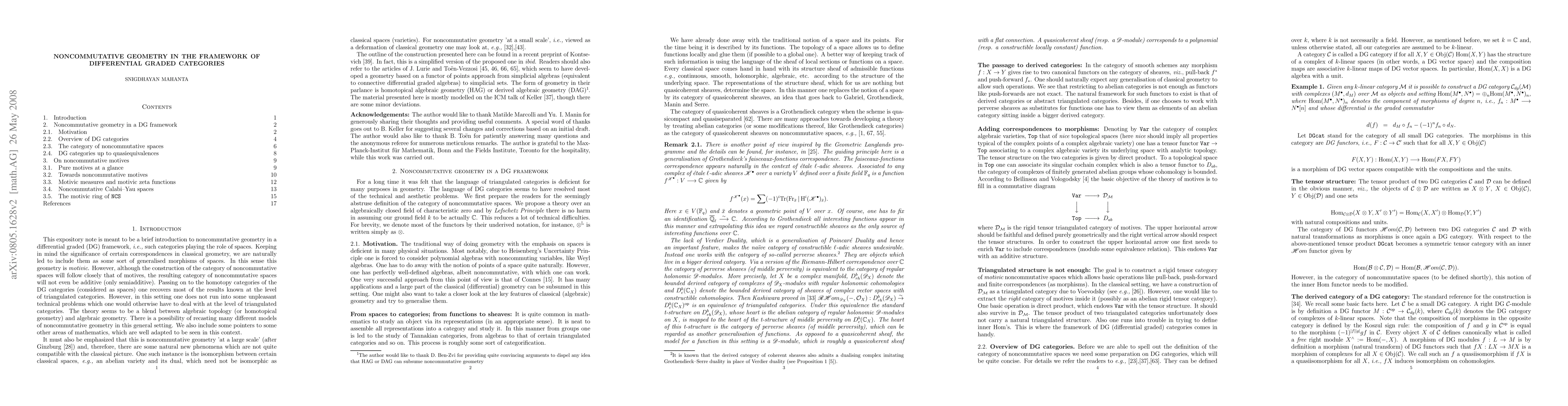 This paper surveys noncommutative geometry using differential graded categories, constructing noncommutative spaces and discussing noncommutative motives, and introduces a motivic measure to define zeta functions for these spaces.