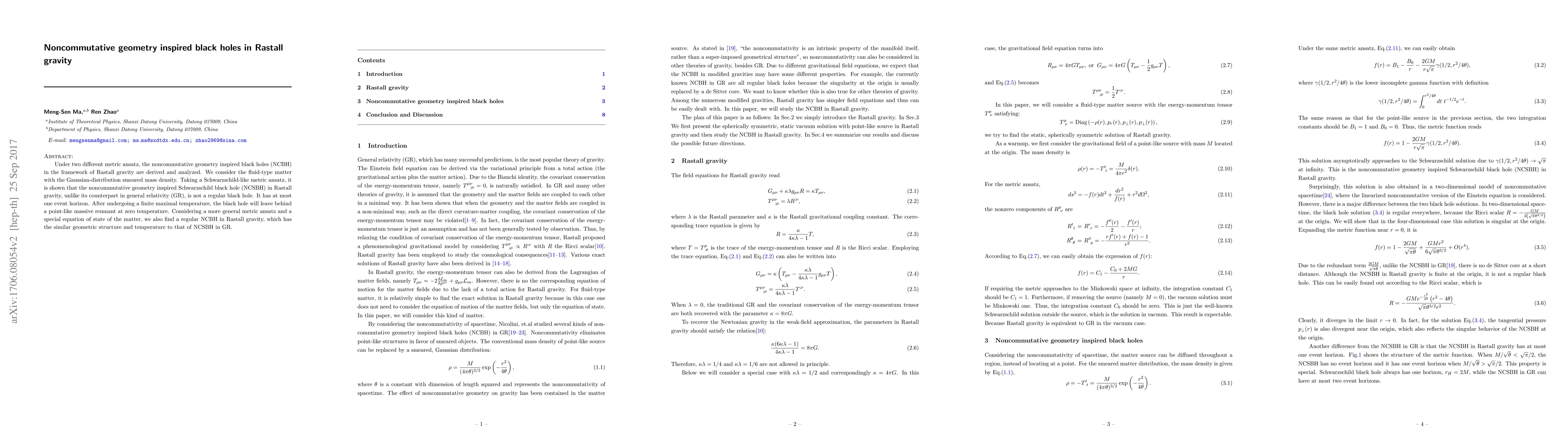This paper derives and analyzes noncommutative geometry inspired black holes in Rastall gravity under two metric ansatzes. A Schwarzschild-like ansatz reveals a noncommutative geometry inspired Schwarzschild black hole with at most one event horizon, unlike in general relativity, and it leaves a point-like massive remnant at zero temperature. A more general ansatz leads to a regular black hole similar to its general relativity counterpart in geometric structure and temperature.