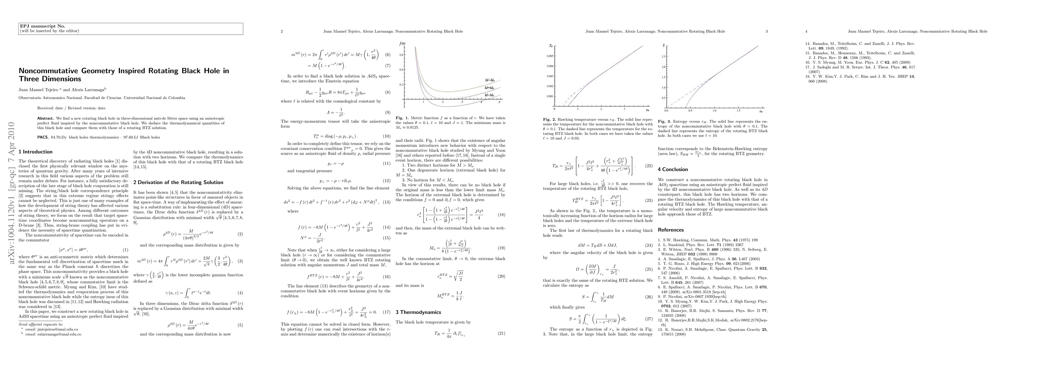 We find a new rotating black hole in three-dimensional anti-de Sitter space using an anisotropic perfect fluid inspired by the noncommutative black hole. We deduce the thermodynamical quantities of this black hole and compare them with those of a rotating BTZ solution.