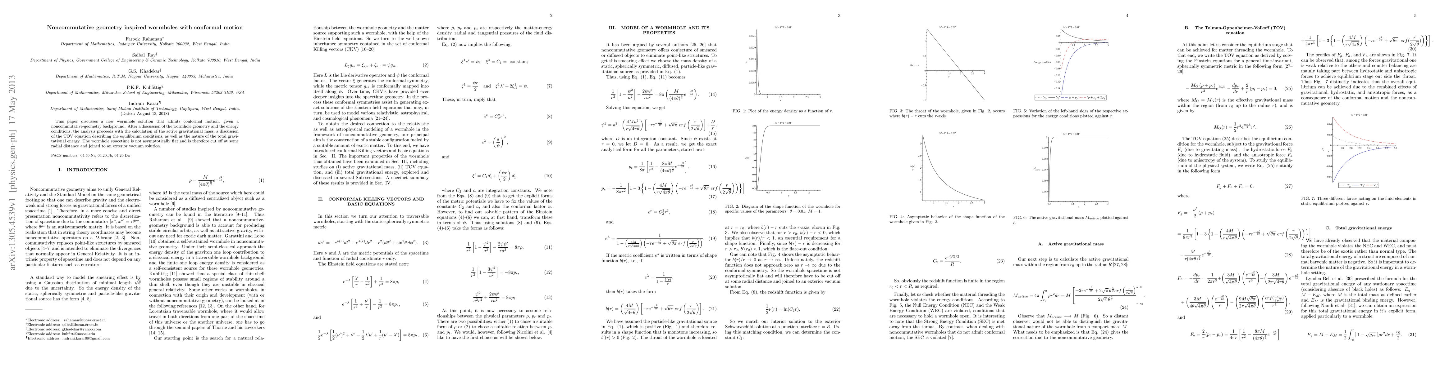 This paper presents a new wormhole solution in noncommutative geometry with conformal motion, describing its active gravitational mass, equilibrium conditions, and total energy, offering insights into the nature of these exotic spacetimes.