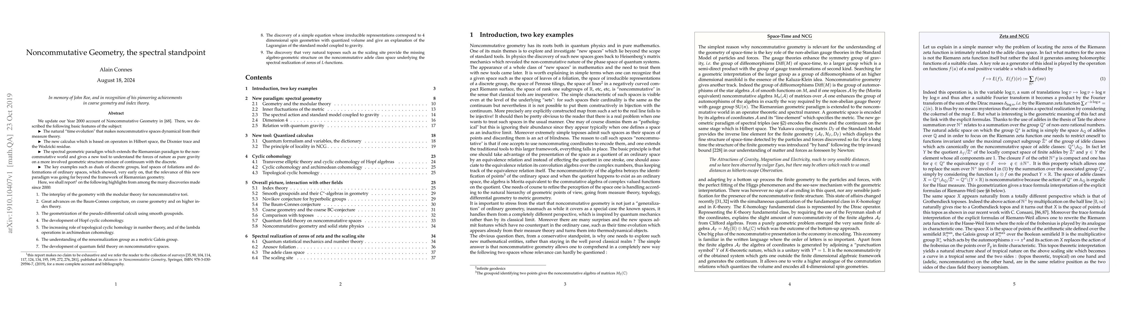 This paper highlights recent advances in Noncommutative Geometry, including its interaction with modular theory, progress on the Baum-Connes conjecture, and the development of Hopf cyclic cohomology, along with the discovery of a simple equation explaining 4-dimensional spin geometries and the Lagrangian of the standard model coupled to gravity.
