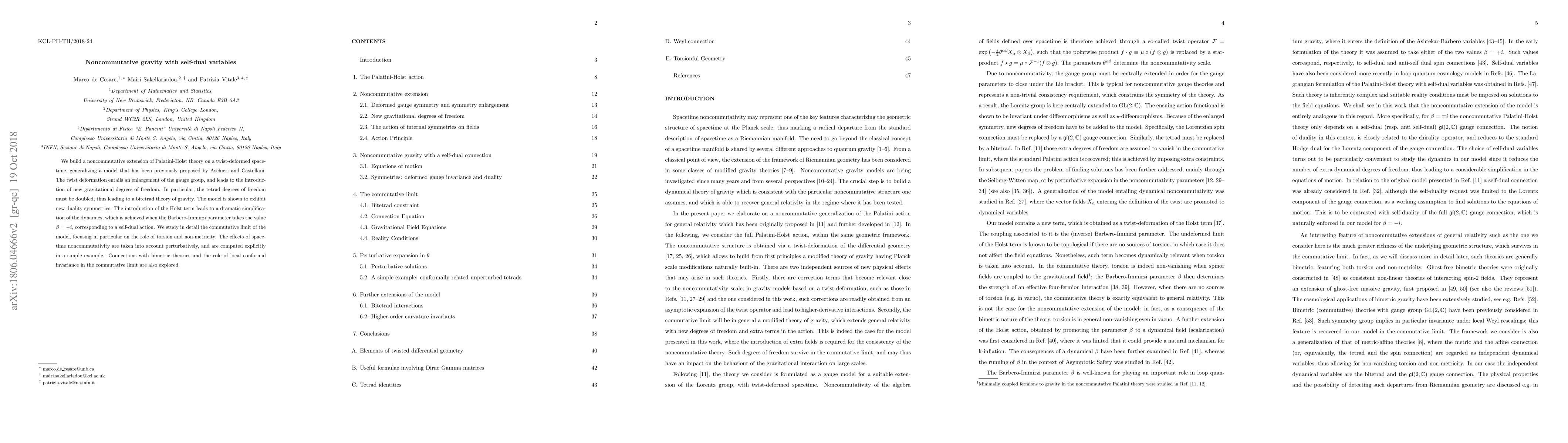 This paper extends Palatini-Holst theory to noncommutative spacetime using twist deformation, resulting in a bitetrad theory with new gravitational degrees of freedom and duality symmetries. The dynamics simplify significantly when the Barbero-Immirzi parameter is self-dual, and the commutative limit reveals insights into torsion and non-metricity.