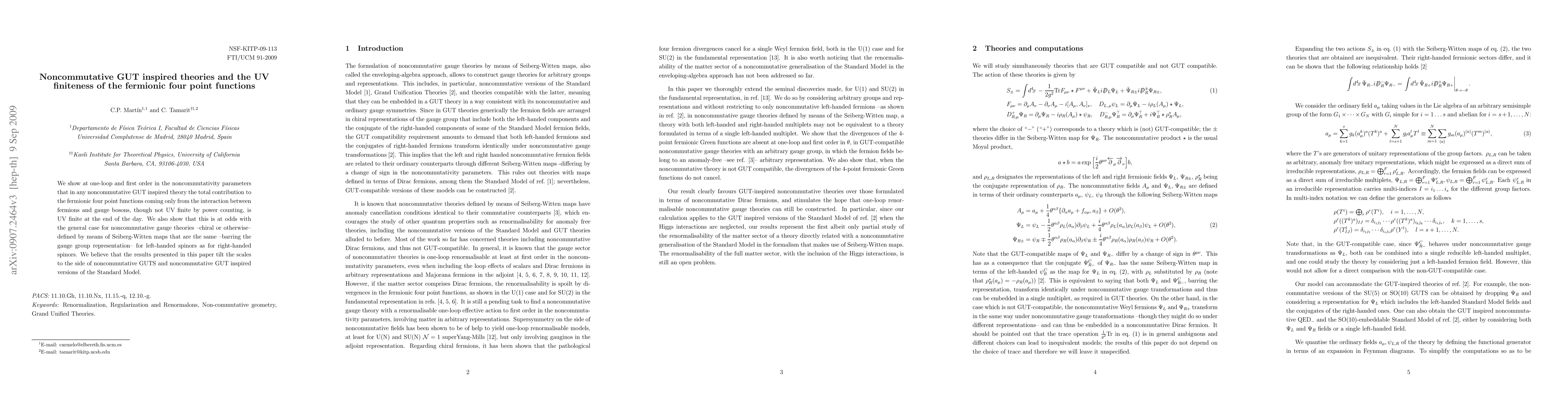 We show at one-loop and first order in the noncommutativity parameters that in any noncommutative GUT inspired theory the total contribution to the fermionic four point functions coming only from the interaction between fermions and gauge bosons, though not UV finite by power counting, is UV finite at the end of the day. We also show that this is at odds with the general case for noncommutative gauge theories --chiral or otherwise-- defined by means of Seiberg-Witten maps that are the same --barring the gauge group representation-- for left-handed spinors as for right-handed spinors. We believe that the results presented in this paper tilt the scales to the side of noncommutative GUTS and noncommutative GUT inspired versions of the Standard Model.