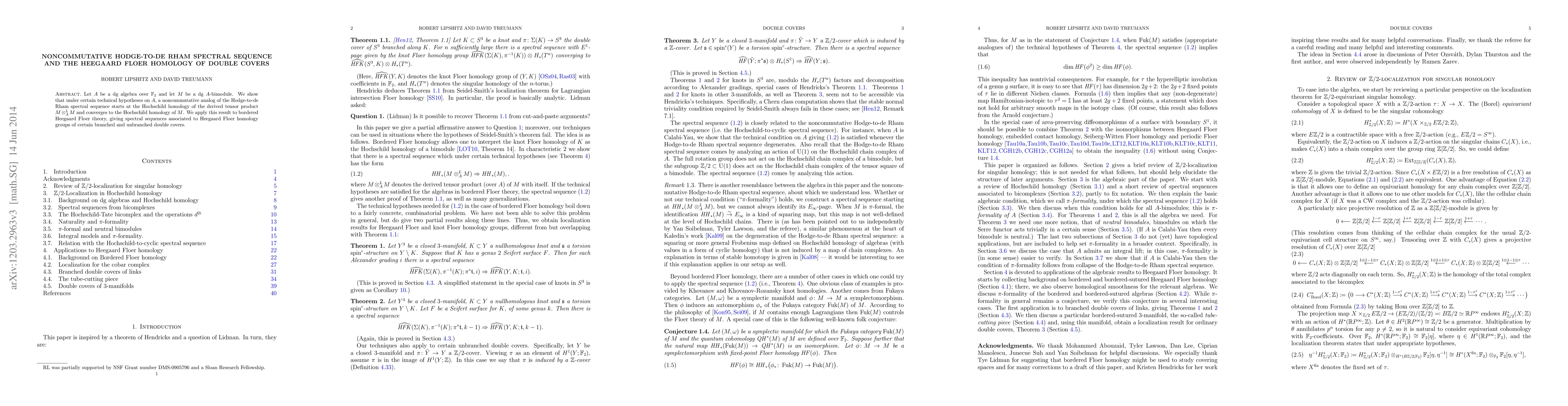 This paper constructs a noncommutative Hodge-to-de Rham spectral sequence from Hochschild homology, applicable to dg algebras over F_2 and their bimodules. It then uses this result to develop spectral sequences related to Heegaard Floer homology in the context of double covers.