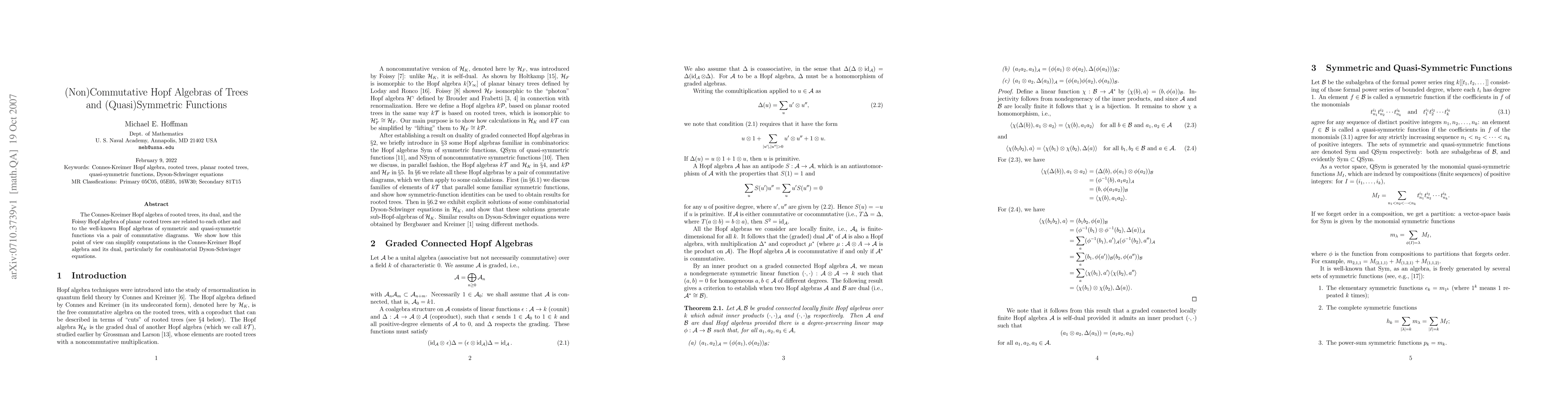The paper explores connections between Connes-Kreimer and Foissy Hopf algebras of trees and symmetric/quasi-symmetric functions, using commutative diagrams to simplify computations, especially in solving combinatorial Dyson-Schwinger equations.
