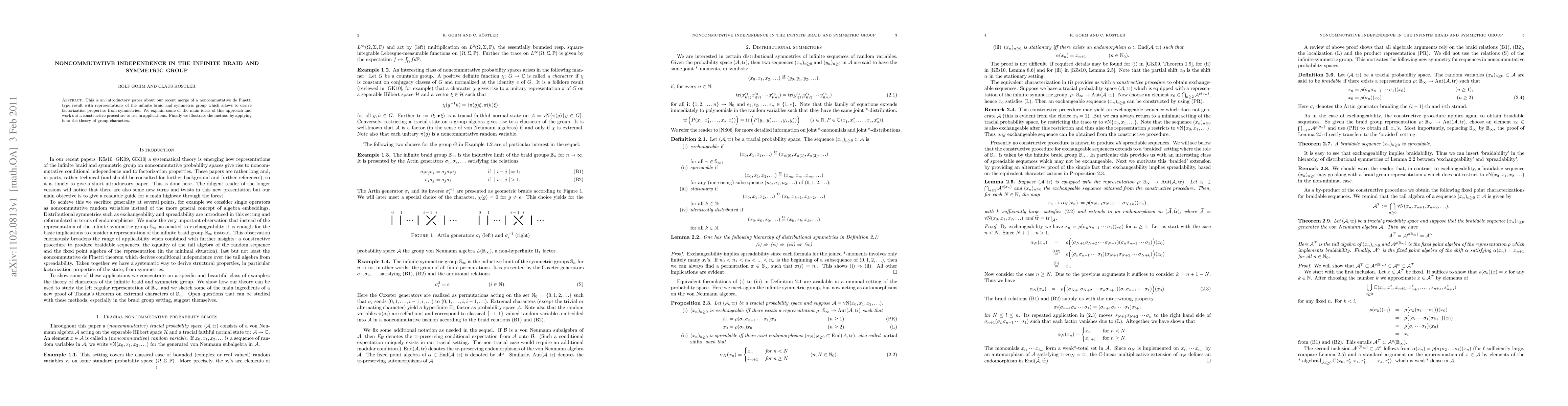 This is an introductory paper about our recent merge of a noncommutative de Finetti type result with representations of the infinite braid and symmetric group which allows to derive factorization properties from symmetries. We explain some of the main ideas of this approach and work out a constructive procedure to use in applications. Finally we illustrate the method by applying it to the theory of group characters.