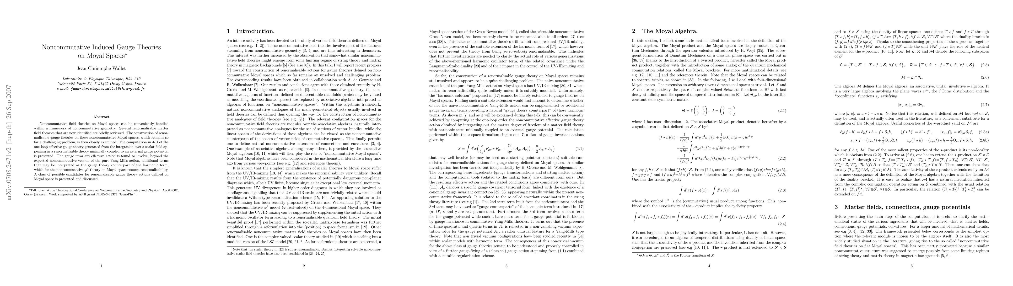 This paper reviews renormalisable matter field theories on Moyal spaces and constructs renormalisable gauge theories on these spaces, presenting a 4-D one-loop effective gauge theory computation. The gauge invariant effective action includes terms beyond the noncommutative Yang-Mills action, introducing gauge theory counterparts of harmonic terms to ensure renormalisability.
