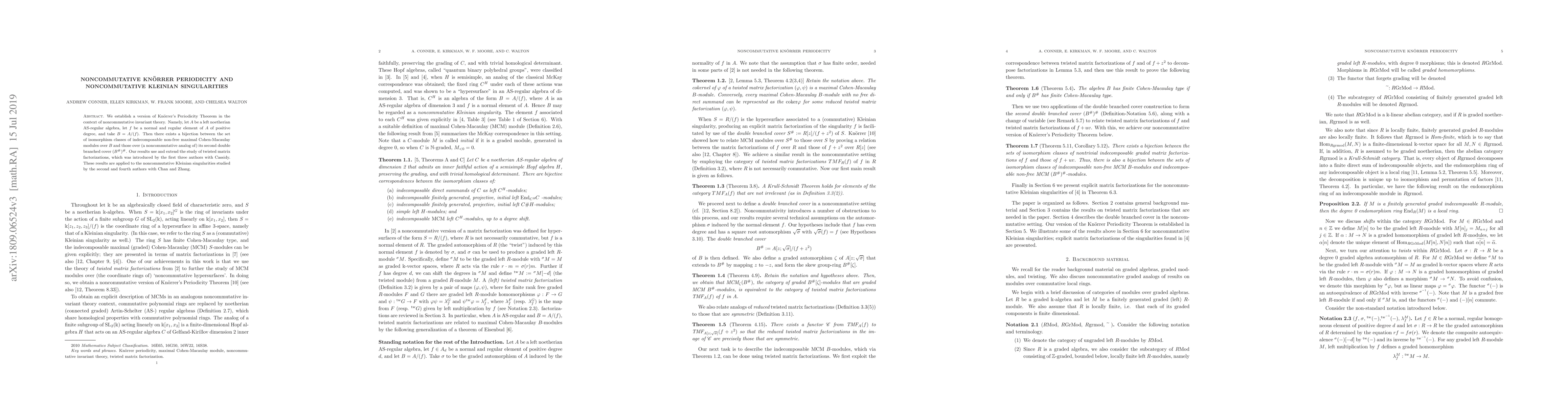 We establish a version of Kn\"{o}rrer's Periodicity Theorem in the context of noncommutative invariant theory. Namely, let $A$ be a left noetherian AS-regular algebra, let $f$ be a normal and regular element of $A$ of positive degree, and take $B=A/(f)$. Then there exists a bijection between the set of isomorphism classes of indecomposable non-free maximal Cohen-Macaulay modules over $B$ and those over (a noncommutative analog of) its second double branched cover $(B^\#)^\#$. Our results use and extend the study of twisted matrix factorizations, which was introduced by the first three authors with Cassidy. These results are applied to the noncommutative Kleinian singularities studied by the second and fourth authors with Chan and Zhang.