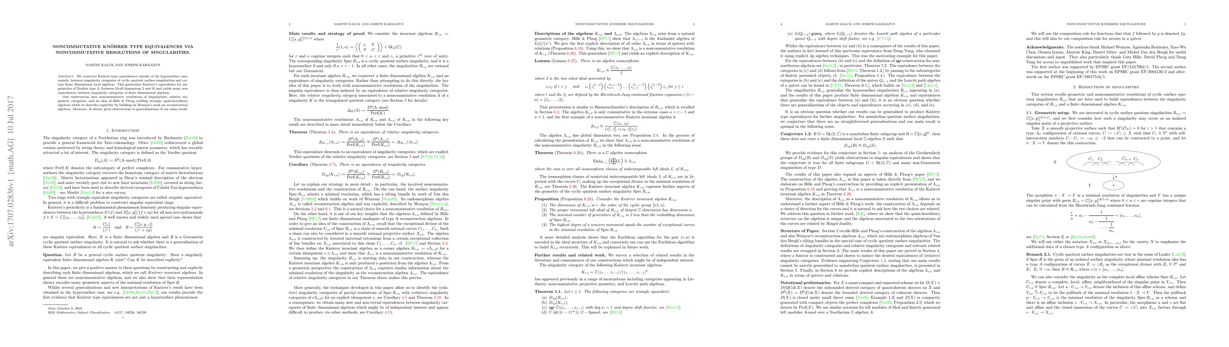 Researchers developed a new equivalence between categories of cyclic quotient surface singularities and finite dimensional local algebras, generalizing Kn"orrer's original result and yielding many new equivalences.
