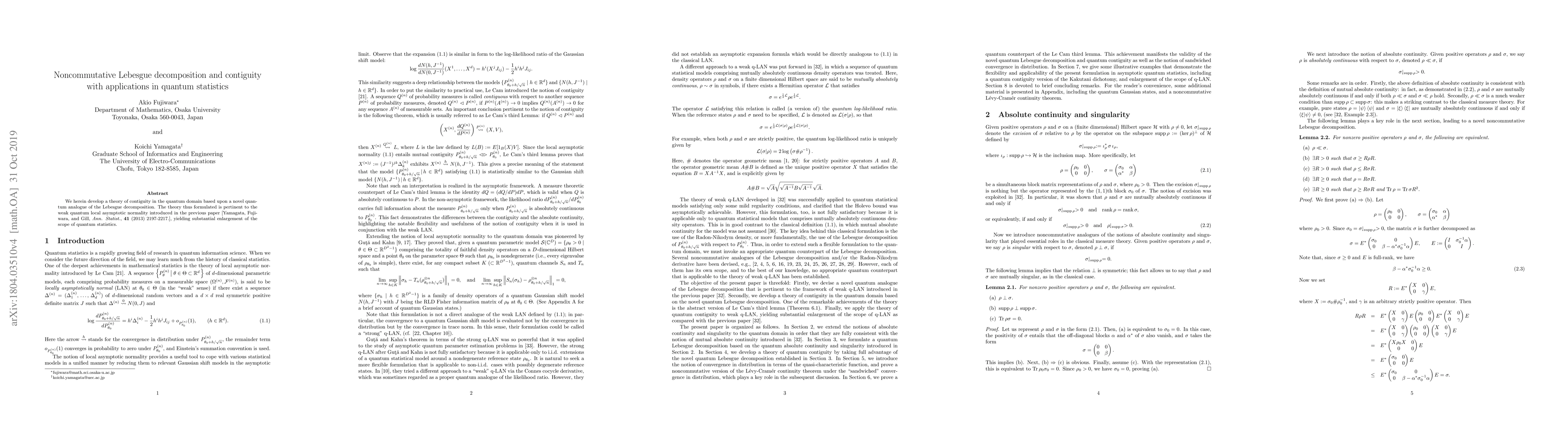 This paper develops a novel quantum analogue of the Lebesgue decomposition to establish a theory of contiguity in the quantum domain, significantly expanding the scope of quantum statistics and linking it to weak quantum local asymptotic normality.