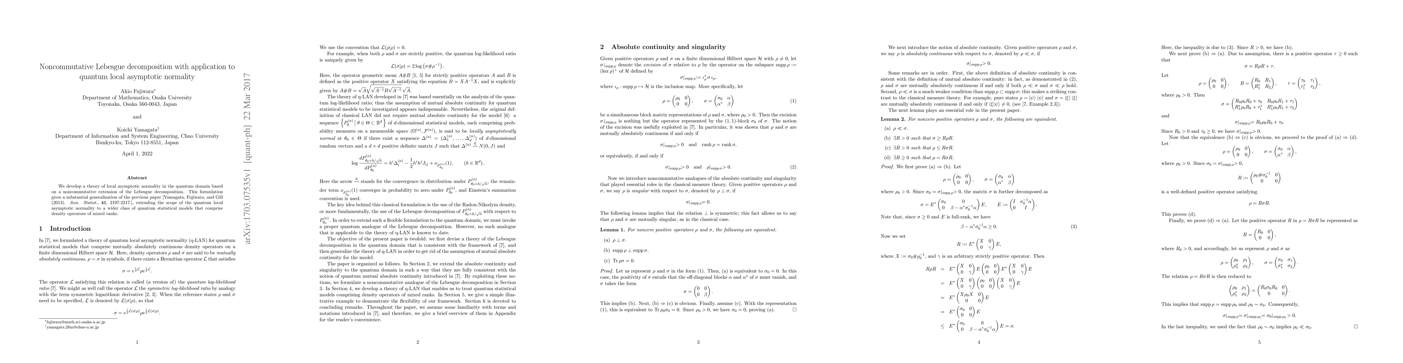 This paper extends the theory of local asymptotic normality to quantum statistical models using a noncommutative Lebesgue decomposition, generalizing previous work to include mixed-rank density operators. The new formulation broadens the applicability of quantum local asymptotic normality.