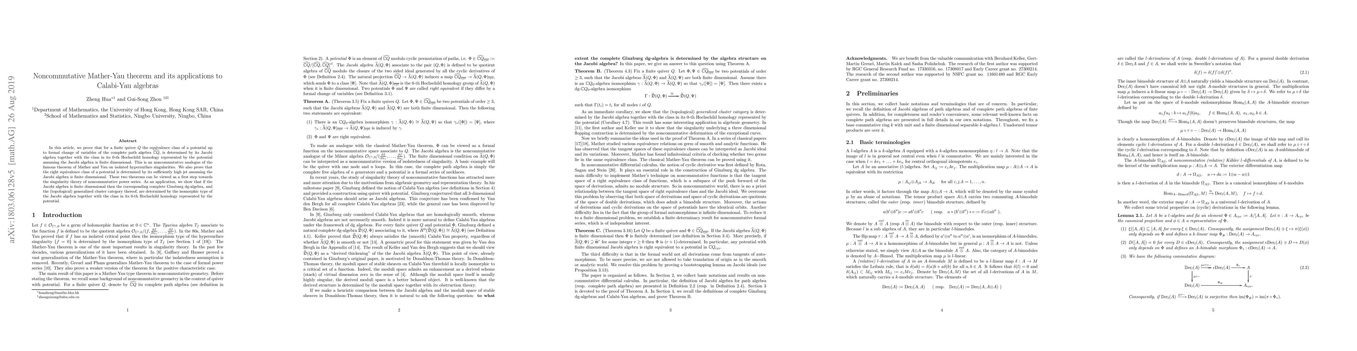 In this article, we prove that for a finite quiver $Q$ the equivalence class of a potential up to formal change of variables of the complete path algebra $\widehat{\mathbb{C} Q}$, is determined by its Jacobi algebra together with the class in its 0-th Hochschild homology represented by the potential assuming the Jacobi algebra is finite dimensional. This is an noncommutative analogue of the famous theorem of Mather and Yau on isolated hypersurface singularities. We also prove that the right equivalence class of a potential is determined by its sufficiently high jet assuming the Jacobi algebra is finite dimensional. These two theorems can be viewed as a first step towards the singularity theory of noncommutative power series. As an application, we show that if the Jacobi algebra is finite dimensional then the corresponding complete Ginzburg dg-algebra, and the (topological) generalized cluster category thereof, are determined by the isomorphic type of the Jacobi algebra together with the class in its 0-th Hochschild homology represented by the potential.