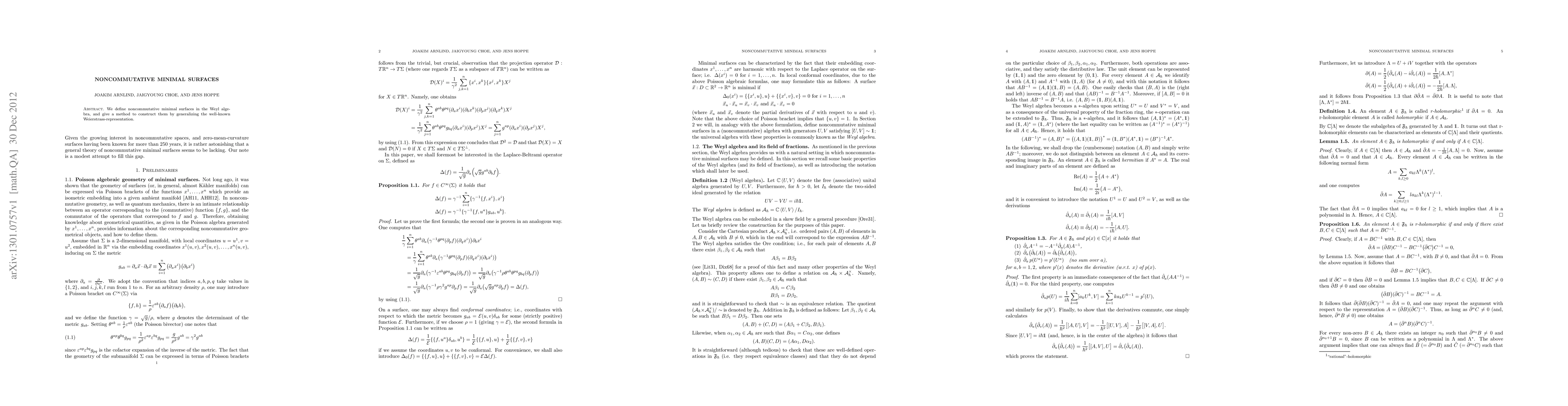 Researchers have introduced noncommutative minimal surfaces in the Weyl algebra, a method to construct them, and explored their properties.