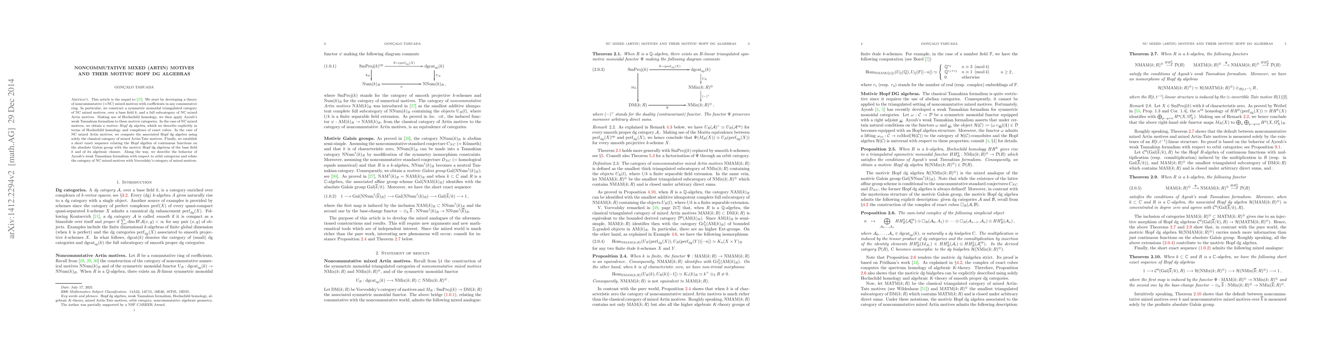 This paper develops a theory of noncommutative mixed motives and constructs a motivic Hopf dg algebra using Hochschild homology and Ayoub's weak Tannakian formalism. It establishes a short exact sequence relating the Hopf algebra of the absolute Galois group with the motivic Hopf dg algebras of a base field and its algebraic closure.